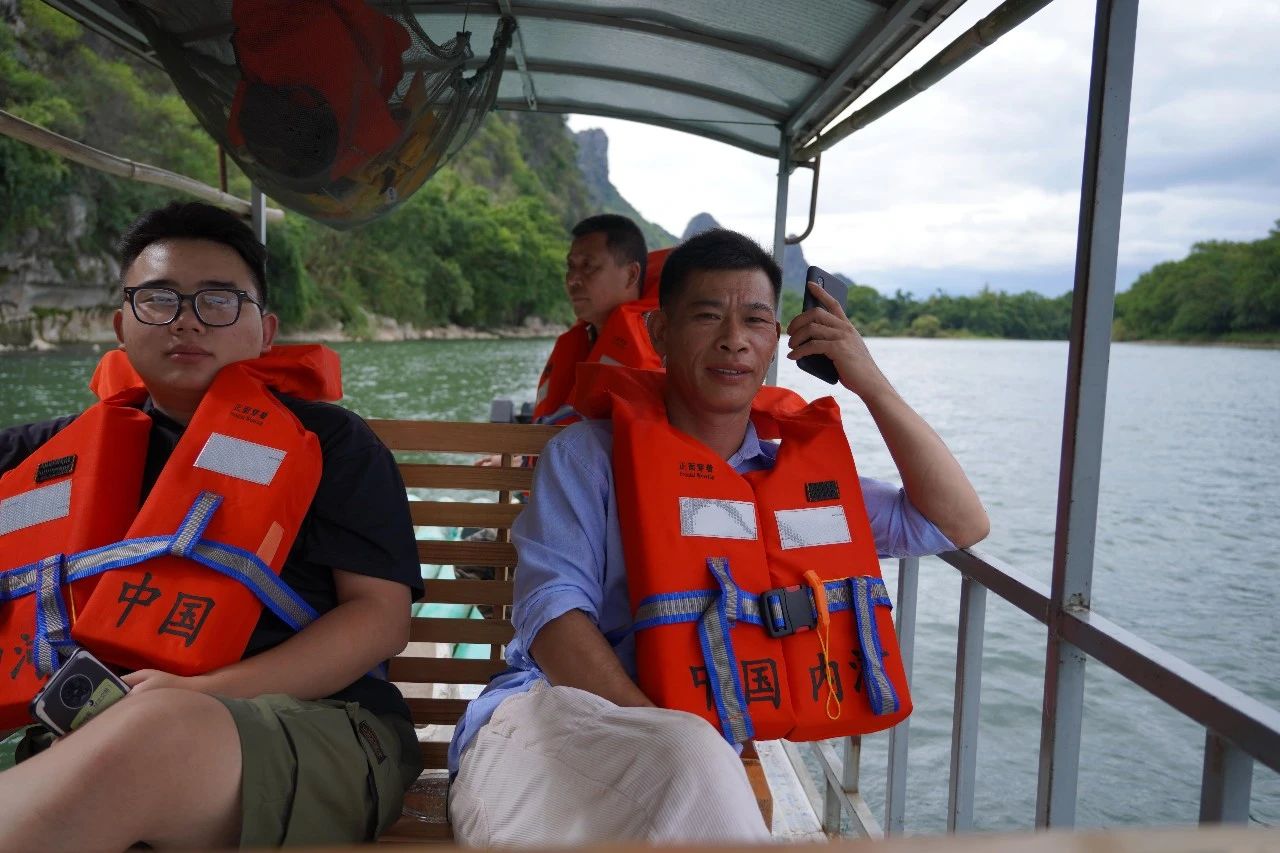 桂林山水甲天下,泛舟江中暢游,一路上如情似夢的景致,令人陶醉。