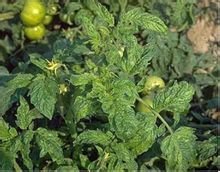 病毒病主要由煙草花葉病毒、黃瓜花葉病毒、馬鈴薯花葉病毒等侵染所致,癥狀隨病毒的不同而變化。癥狀大多是葉片上出現(xiàn)黃綠相間或深淺相間的斑駁,葉脈逐漸透明,葉片微皺,植株較矮,新發(fā)葉片較小、結(jié)果較小且表皮多有斑紋。也有部分發(fā)病葉片自上而下全部或部分變成條狀,中下部葉片向上卷翹,同時花瓣增大形成“巨花”,植株矮化。另外有條斑型癥狀,主要影響果實和莖稈,莖稈有暗綠色或黑褐色油漬狀壞死條斑,果實上多形成不同形狀的褐色斑塊。