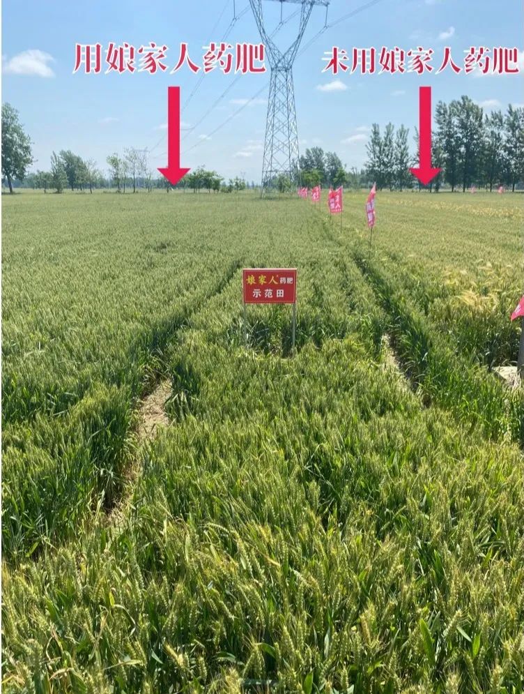 可以明顯看出兩塊麥田的小麥穗、葉片和莖稈都明顯不一樣,沒(méi)用過(guò)娘家人藥肥的麥田死穗也比較明顯,長(zhǎng)勢(shì)偏弱,病害防控不理想。